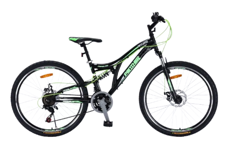 אופניים מבית המותג פנתר PANTHER בעלי שלדת שיכוך מלא מברזל עם שיכוך זעזועים קידמי ומרכזי נוחה במיוחד עם מושב וכידון מתכווננים